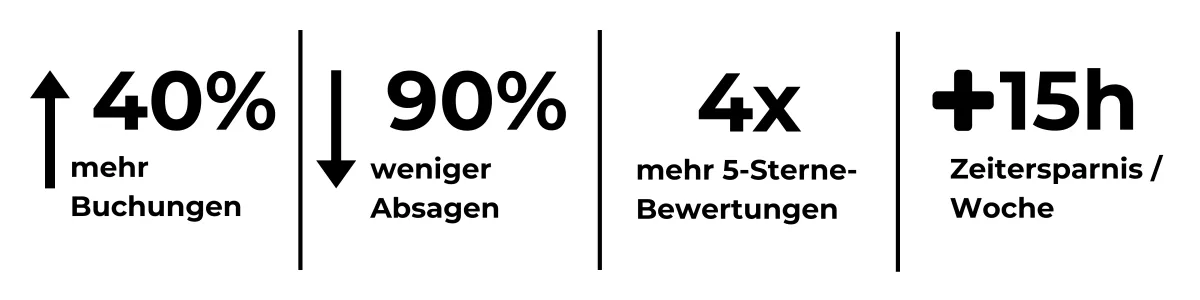 Dein System übernimmt Buchungen, Zahlungen, Bewertungen und Folgeangebote