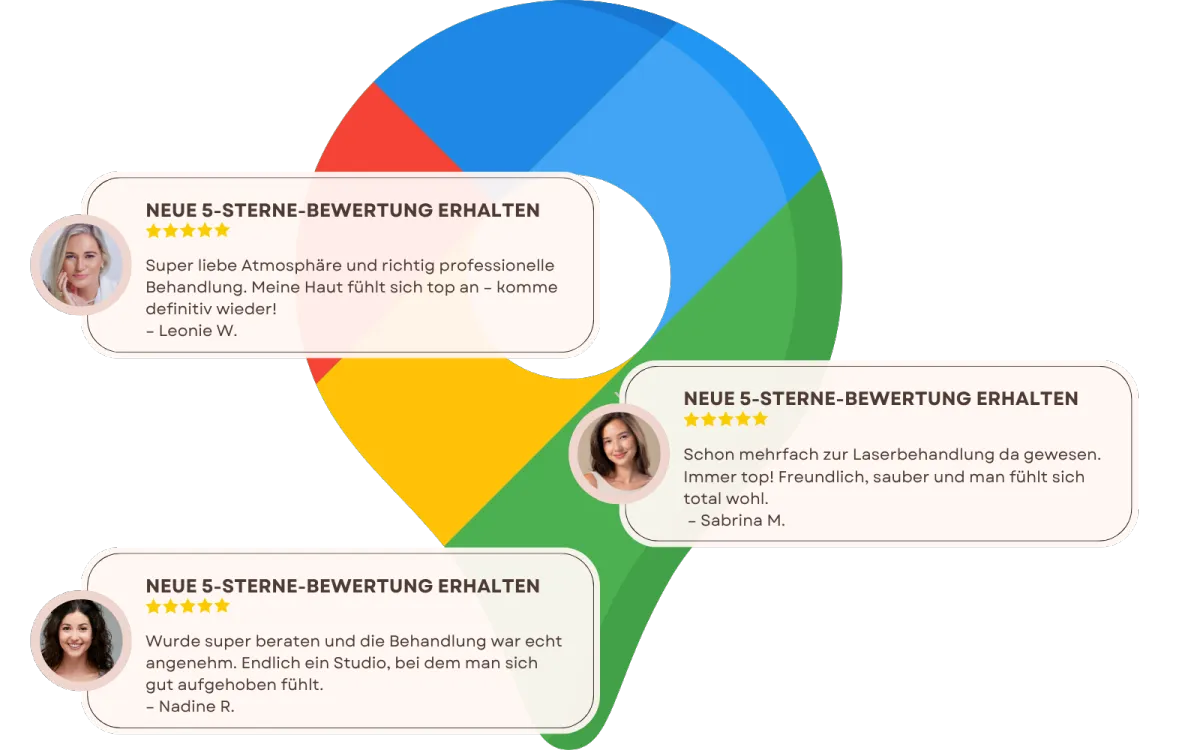 Während du schon beim nächsten Termin bist, sorgt dein System im Hintergrund dafür, dass neue 5‑Sterne‑Bewertungen auf deinem Google-Profil landen. So wirst du zur ersten Wahl für neue Kundinnen in deiner Stadt.