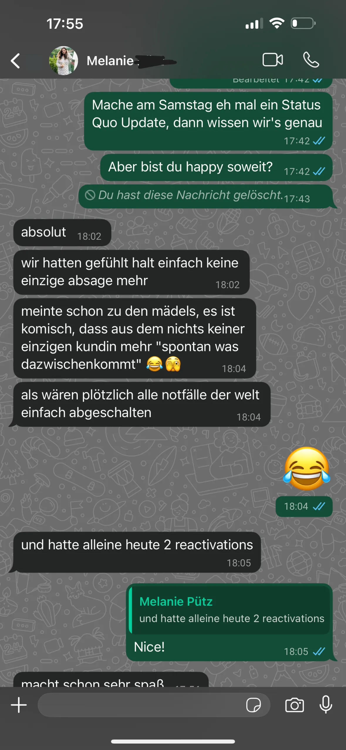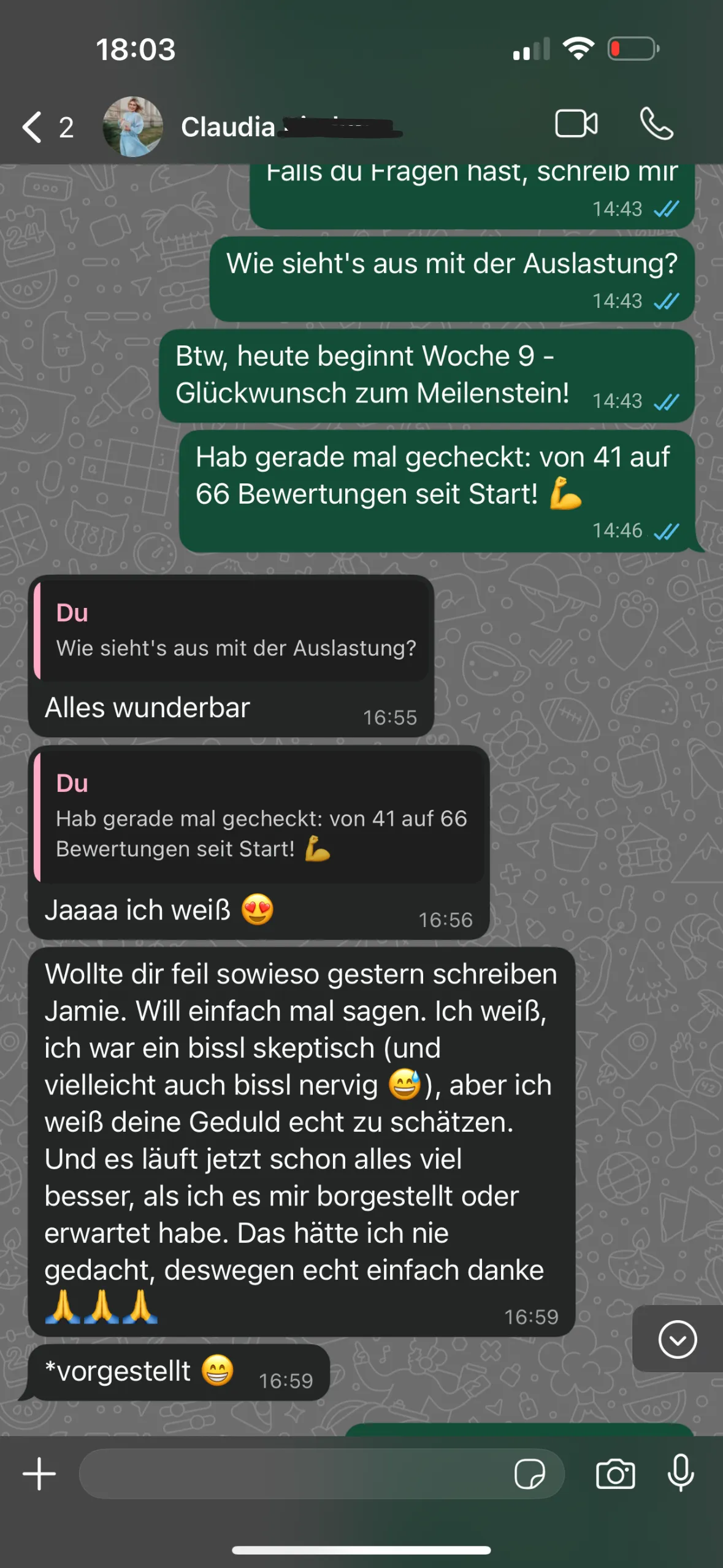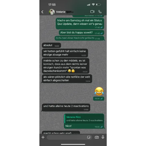 Wir lassen dich niemals allein. Du bekommst persönlichen Support – per WhatsApp, Telefon oder E-Mail. Außerdem erhältst du bei Bedarf Zugang zu Schulungsvideos und Vorlagen.
